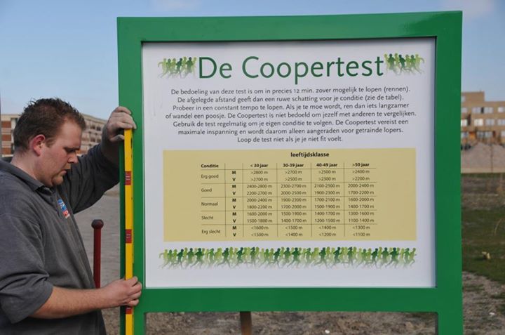 Wil je weten of je fit bent? Dat kan vanaf nu in ons park. Er isĀ een Coopertest-bord geplaatst bij de Columbusschool. Daar ligt ook de eerste milesstone. De milesstones met daarop elke 100 meter aangegeven van de hardloopbaan zijn gemaakt door kinderen van de Columbusschool. Ze hebben ieder een uniek ontwerp. Nieuwsgierig? Start bij het bord, volg de aanwijzingen en ontdek hoe fit je bent.