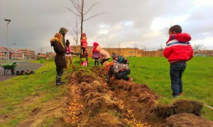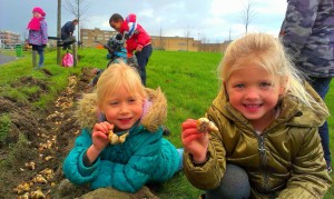 Tussen de buien door hebben de kinderen van BSO de Hooiberg de laatste 3000 bloembollen geplant en liefdevol weer toegedekt voor hun winterslaapje. Petje af voor deze kanjers die graag een bolletje bijdragen aan een mooi park!