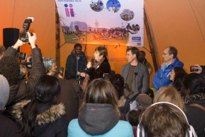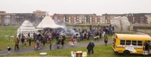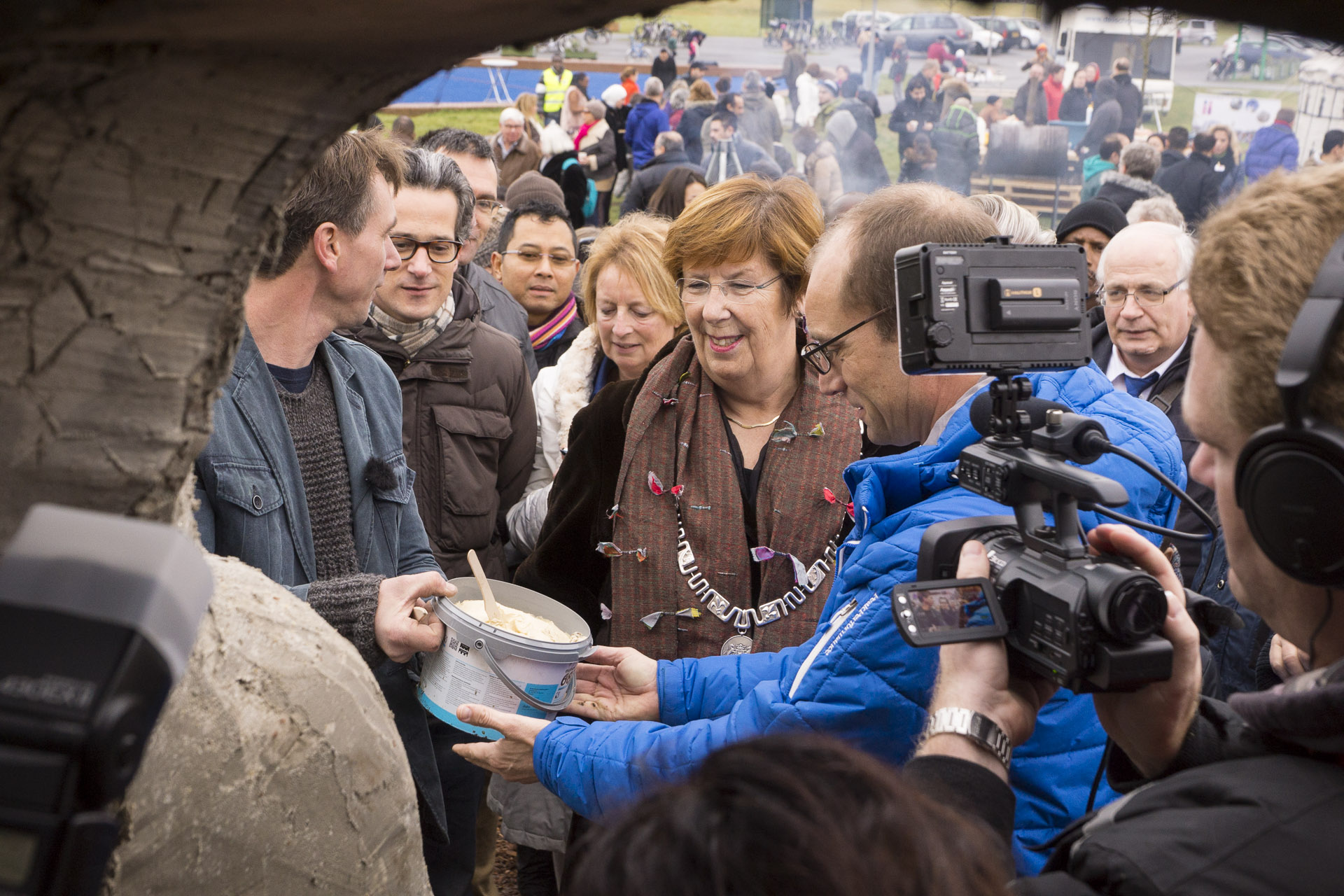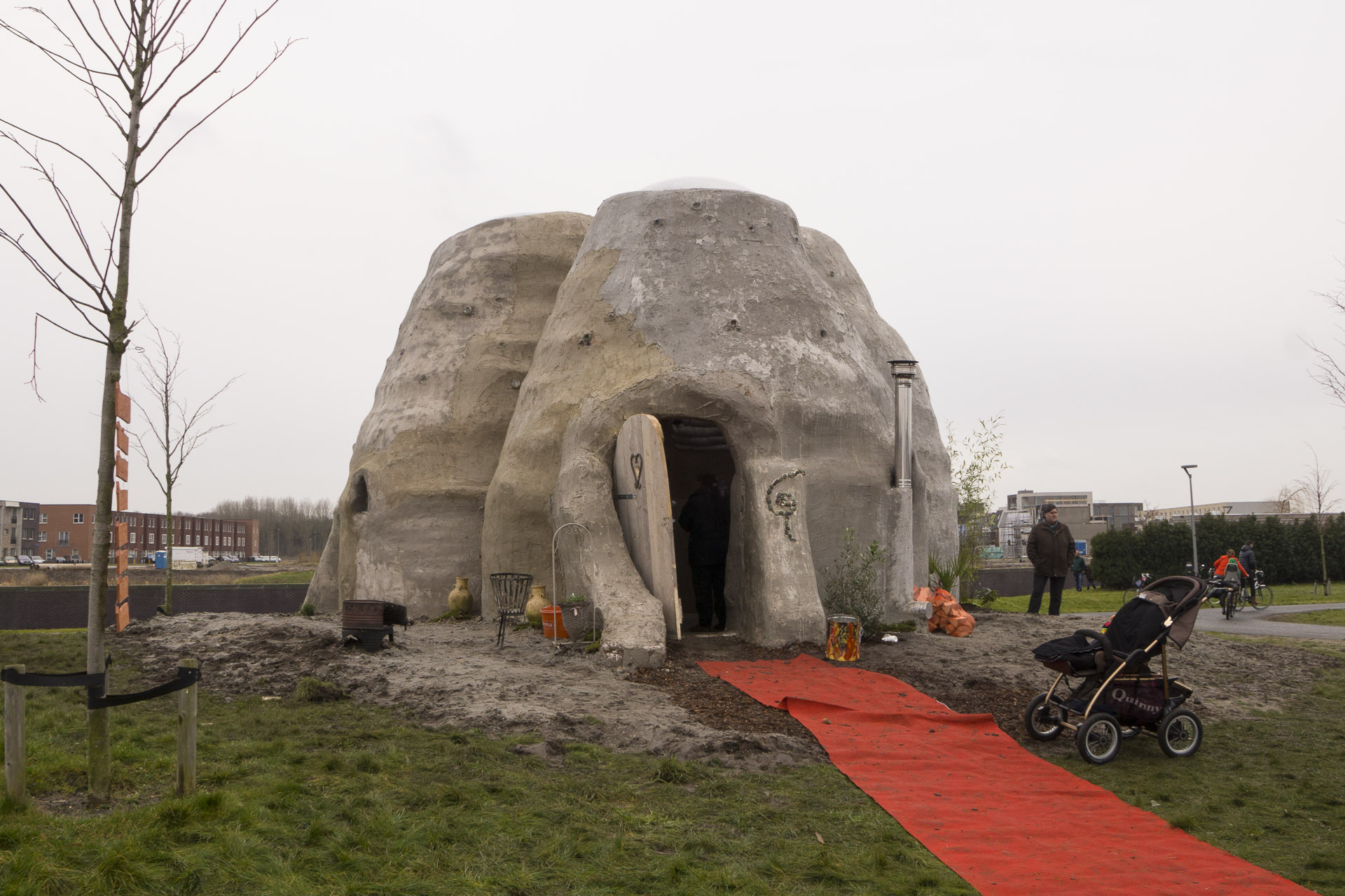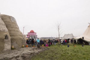 Na 65 dagen noeste arbeid is het Zandzakkenpaviljoen in het Cascadepark op 25 januari 2015 feestelijk in gebruik genomen! Petje af voor alle helpers en de organisatie van Inspiratie Inc. Inspiratie komt van onderop, dat laten jullie toch maar weer mooi zien!