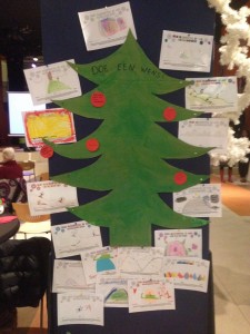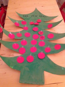 En omdat we een echte kerstboom in het park krijgen hadden we maar meteen een kerstwensboom geknutseld als voorproefje. Een boom met aan het einde heel veel mooie wensen.