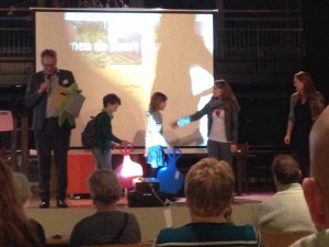 Gisteren waren we op de themabijeenkomst Almere Poort, om hier onze sleeheuvel aan iedereen voor te stellen. Twee ijverige tekenaars (Yoël & Quinty) gaven namens alle kinderen van Poort de tekeningen aan de wethouder Henk Mulder met de vraag of er alsjeblieft een sleeheuvel mag komen.